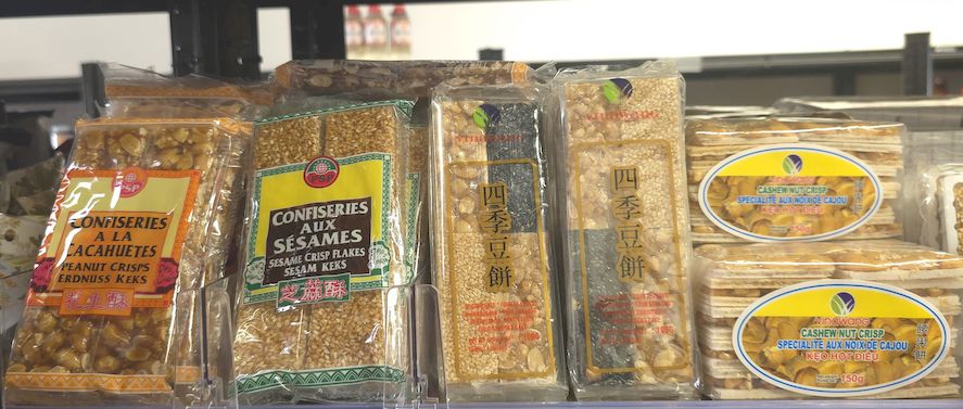 Confiserie asiatique traditionnelle composée de sucre caramélisé et de graines ou noix (sésame, cacahuète, noix de cajou…). Texture croquante et légèrement collante, goût sucré avec arôme grillé très parfumé. Produit authentique très apprécié en Asie.