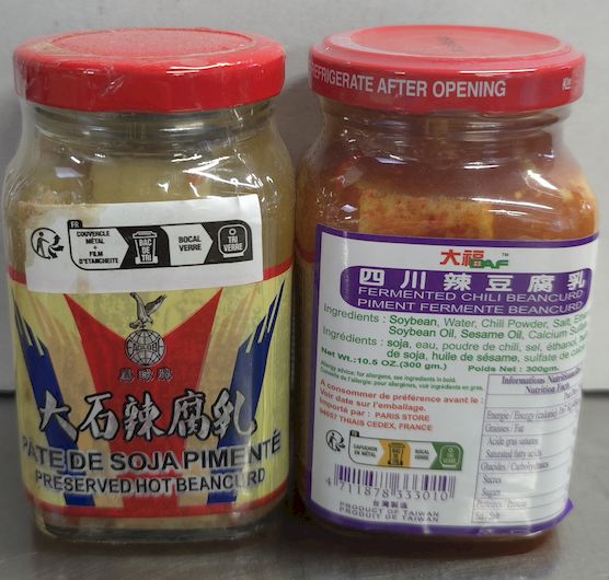 Condiment asiatique traditionnel à base de tofu fermenté (furu), soja, piment et huile de sésame.