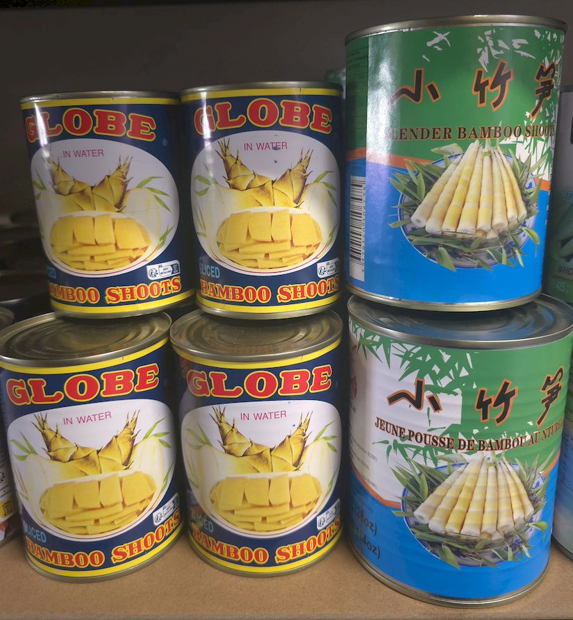 Jeunes pousses de bambou croquantes, déjà cuites et conservées dans l’eau. Goût doux et texture ferme.