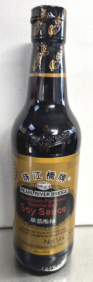 Sauce soja foncée enrichie en extrait de champignon, développant un goût umami plus doux et équilibré.