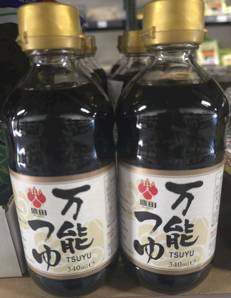 Sauce traditionnelle japonaise, mélange soja + dashi + mirin. Saveur profonde sucrée-salée.